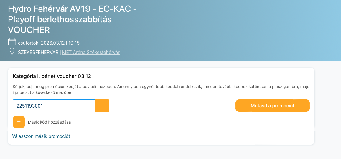 Az utalvány megvásárlásával alapszakasz bérlete érvényessé válik a bérleten feltüntetett szektorba, sorba és helyre. A mérkőzésre való belépésre nem a voucher jogosít, a MET Arénában a megszokott módon, a bérletkártyával történik a belépés.