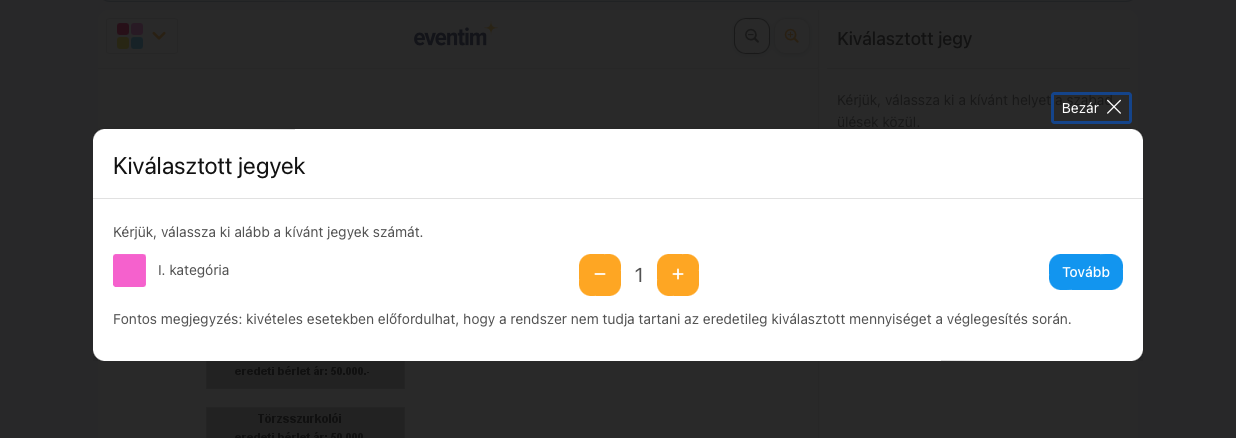 A megjelenő felületen a "színes" téglalapra kattintva annyi jegyet kell kiválasztani, ahány bérletkódot megadott.