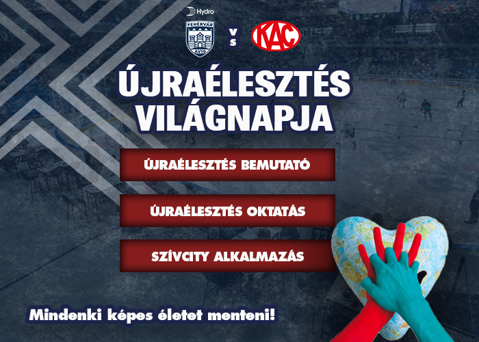 Különleges tematikával várja szurkolóit a Hydro Fehérvár AV19 október 24-én, pénteken a MET Arénában. Az ICE Hockey League aktuális fordulójában a Klagenfurt látogat Székesfehérvárra, a találkozóhoz pedig az újraélesztés fontosságára fókuszáló program is kapcsolódik.